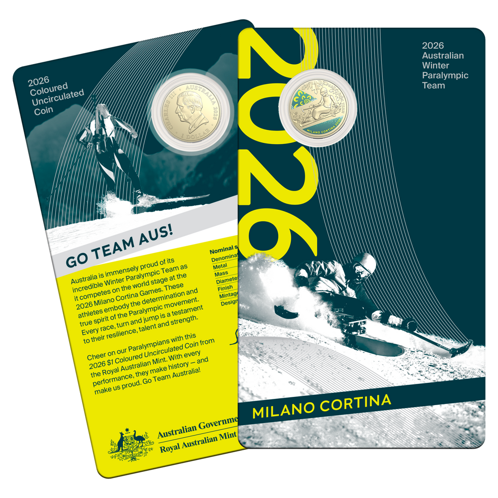 This 2026 $1 Coloured Uncirculated Coin embodies the determination, courage, the true spirit of the Paralympic movement, and the whole nation's pride for the Australian Winter Paralympic Team as they take on the world at the 2026 Milano Cortina Games.
