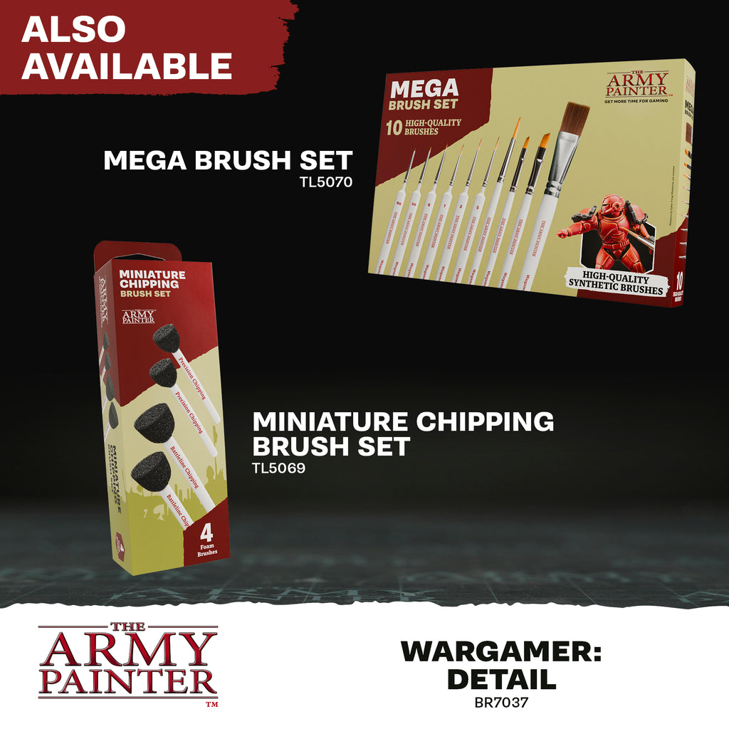 The Size 0 Detail brush, with Bionic Bristles, has a fine tip to add delicate highlights to the smallest parts of your miniatures.